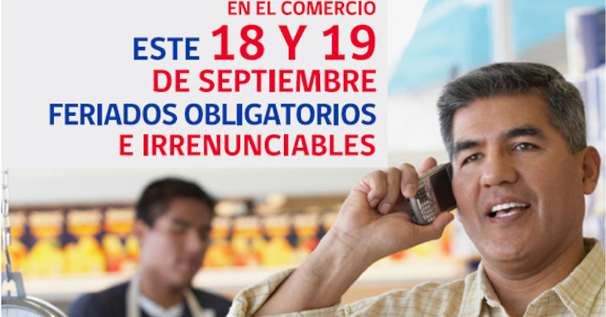 La ley otorga feriado obligatorio e irrenunciable a todos los trabajadores dependientes del comercio, por los días 18 y 19 de septiembre de cada año, entendiéndose por tales a todos aquellos trabajadores que se desempeñen en un establecimiento de tal naturaleza y cuyas labores se relacionan con el expendio o venta directa al público de las mercaderías o productos que en ellos se ofrecen.