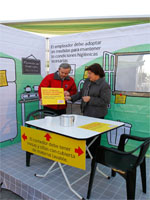 La actividad organizada por la Dirección del Trabajo que se replicará en las principales ciudades del país contempla también un andamio, en el que un actor muestra las características que este tipo de infraestructura requiere. La Directora del Trabajo, María Cecilia Sánchez, dijo que "el año pasado 844 trabajadores sufrieron caídas de altura y 50 murieron a consecuencia de esos accidentes. Otros 794 resultaron con lesiones graves".