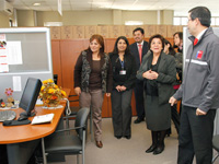 Junto al director regional metropolitano Poniente, Ramón Ferrada, y la inspectora comunal Claudia Toro, la directora recorrió las dependencias, conversó con los funcionarios y valoró el compromiso institucional demostrado por todos ellos al soportar difíciles condiciones de trabajo después del terremoto del 27 de febrero de 2010.