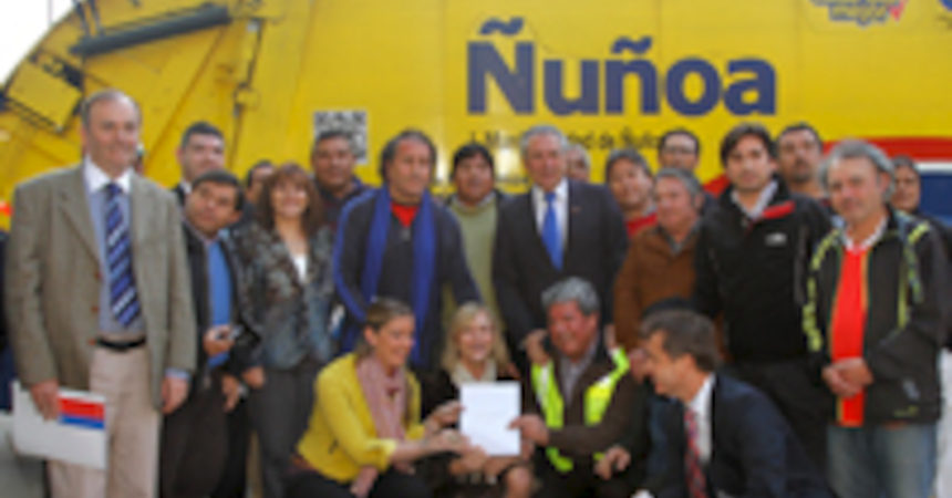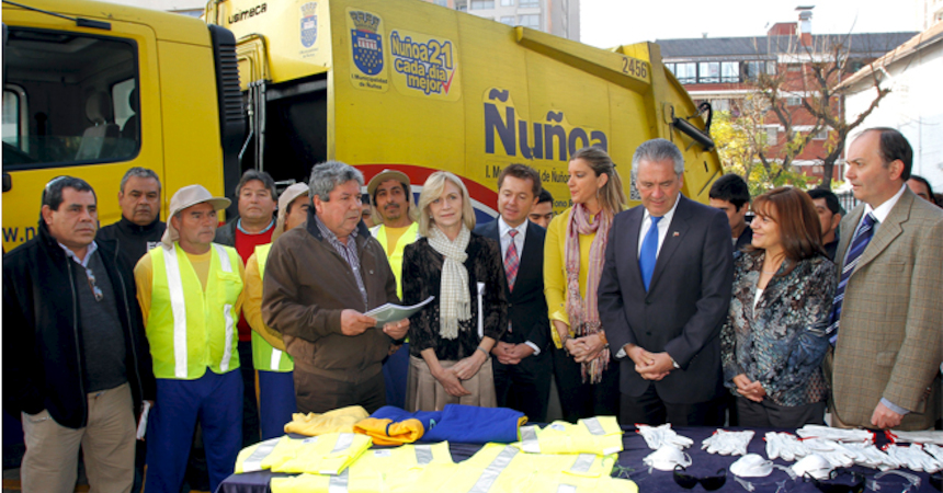 Las nuevas garantías laborales y elementos de protección personal con que deberán contar las empresas recolectoras de basura para optar a las licitaciones municipales, presentaron en Ñuñoa la ministra del Trabajo, Evelyn Matthei, y la directora (s) del Trabajo, Inés Viñuela.