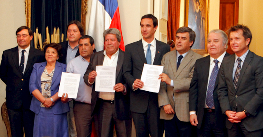 Entre los principales firmantes figuran el ministro del Trabajo y Previsión Social, Juan Carlos Jobet; el subsecretario de Desarrollo Regional, Miguel Flores; el presidente de la Federación de Trabajadores de Aseos, Jardines y Rellenos Sanitarios, Armando Soto, y la directora del Trabajo, María Cecilia Sánchez.