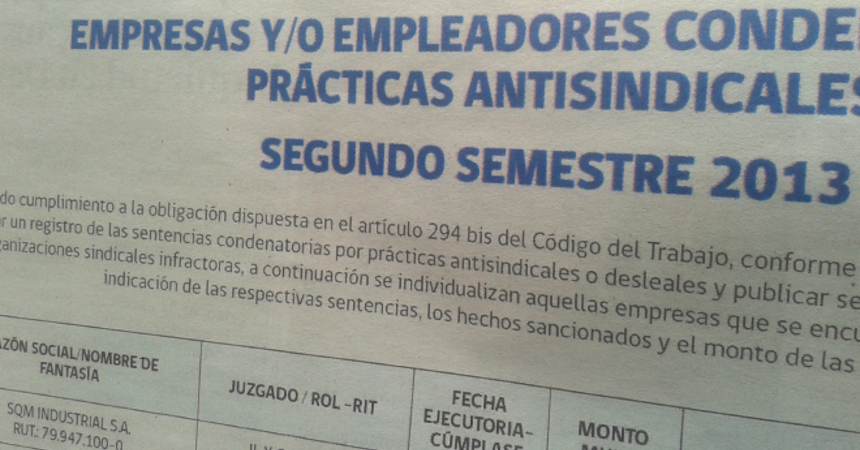 Durante los últimos cuatro años el 75,8% de las 317 denuncias que terminaron en condenas fue llevado a tribunales por la Dirección del Trabajo, tras formarse plena convicción de que sí constituían prácticas antisindicales.