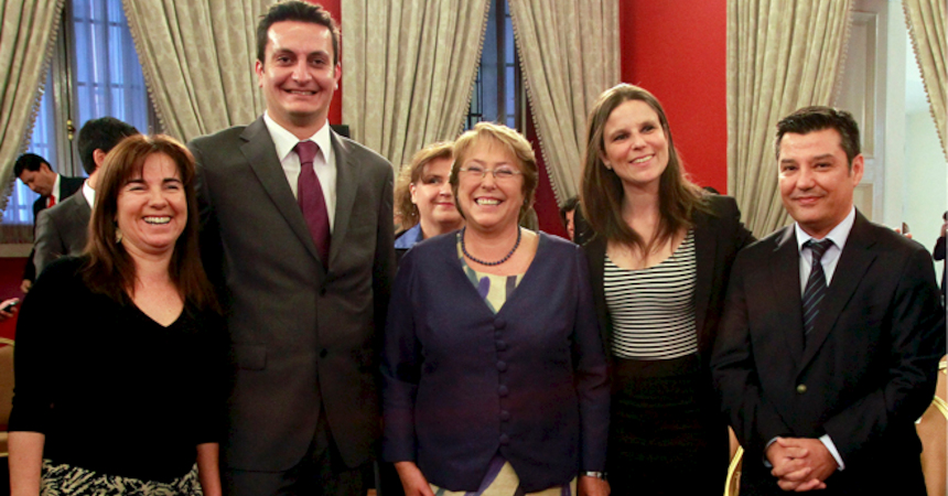 Presidenta de la República, Michelle Bachelet; ministra del Trabajo y ministro de Justicia firmaron las indicaciones por las que se modifica el concepto de empresa, contenido en el Código del Trabajo.