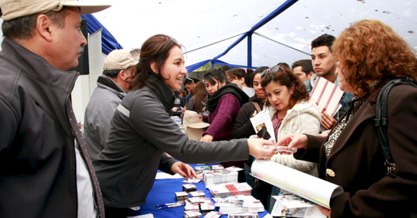 Cientos de folletos y calendarios alusivos a la conmemoración fueron repartidos por funcionarios del servicio fiscalizador en un stand levantado en pleno Paseo Bulnes, en el centro de Santiago.