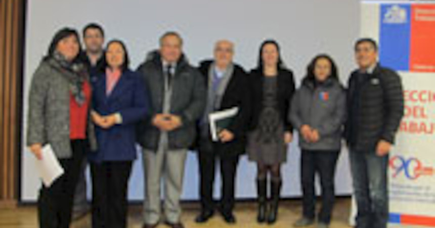 El estudio "Condiciones de trabajo, seguridad y salud en pisciculturas de la región de La Araucanía", de Celina Carrasco, fue lanzado en un acto en la Intendencia Regional, con asistencia del Seremi del Trabajo, Joaquín Bascuñán, la Directora del Trabajo, Maite Núñez, el Jefe del Departamento de Estudios de la DT, Jorge Salinero, y la propia autora.