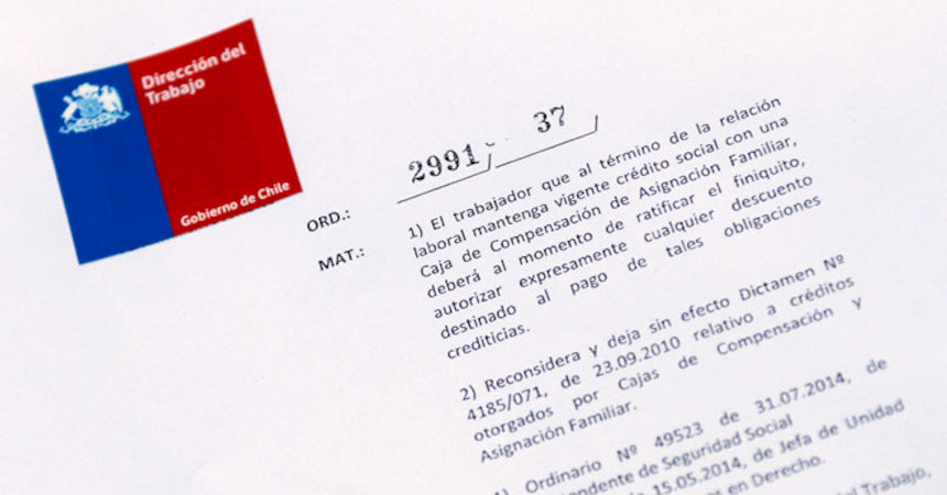 A través del dictamen Nº 2991/37, emitido el 7 de agosto, la Dirección del Trabajo (DT) estableció que el trabajador será quien decida el descuento de cualquier crédito social que mantenga vigente con alguna caja de compensación al momento de ratificar el finiquito.