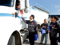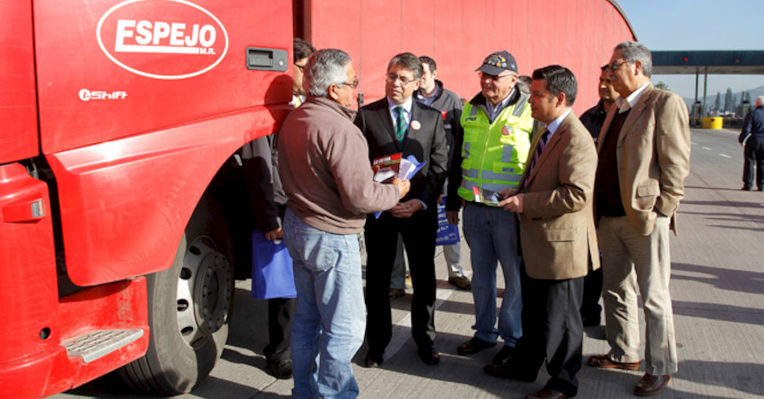 El Director del Trabajo, Christian Melis, fue acompañado en el peaje de Lampa, en la Ruta 5 Norte, por los subsecretarios del Trabajo, Francisco Javier Díaz, y de Transportes, Cristián Bowen; el director del Instituto de Seguridad Laboral, Jaccob Sandoval; la Secretaria Ejecutiva de la Comisión Nacional de Seguridad del Tránsito (Conaset), Francisca Yáñez; el general de Carabineros, Gonzalo Blu; el presidente de la Federación Nacional de Conductores de Buses y Camiones (Fenasicoch), José Sandoval; el presidente de ChileTransporte A.G., Mauricio Perrot y el presidente de la Asociación Gremial de Dueños de Camiones, Juan Araya.
