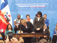 En una ceremonia realizada en el Palacio de la Moneda, la Presidenta Michelle Bachelet dijo que, "estamos dando un paso fundamental para la dignidad de los y las trabajadoras de nuestro país".