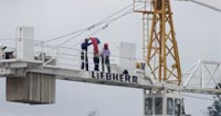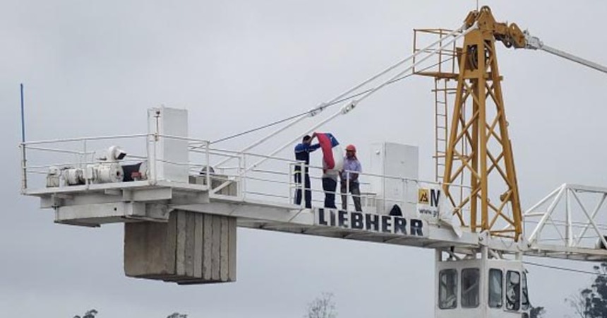 Cinco trabajadores de la empresa Ingeniería Conceptual S.A., contratista de OHL Obrascon S.A., se manifestaron a 35 metros de altura en una grúa pluma, al interior de una obra en el Servicio de Salud de Viña del Mar-Quillota, para realizar demandas laborales.