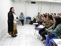 La primera clase fue dictada por la jefa de Relaciones Laborales de la DT, Wendolyng Silva, quien expuso sobre "Breve historia del derecho del trabajo y del sindicalismo en Chile".