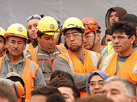 Además de las autoridades y ejecutivos de todos los organismos participantes, hubo una masiva y entusiasta participación de cerca de 300 trabajadores que laboran en el edificio en construcción.