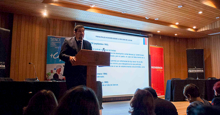 Así de pormenorizada fue la exposición de Cristian Umaña, director de la Regional Metropolitana Oriente del Trabajo, en el seminario "Las Mujeres de Providencia pensamos un Trabajo en Igualdad", organizado por la Oficina Municipal de Intermediación Laboral y que congregó a una nutrida concurrencia, principalmente femenina, de unos 150 oyentes.