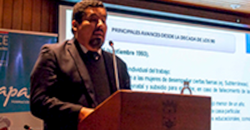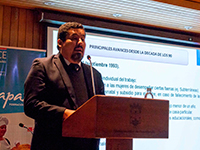 El director regional tituló su intervención "Derecho en Mirada de Mujer", destacando, principalmente, todas las reformas favorables a la mujer promulgadas a partir de 1990, año desde el cual, dijo, "ha habido una evolución del derecho laboral y un cambio de actitud para reconocer que las trabajadoras tienen los mismos derechos que los trabajadores".