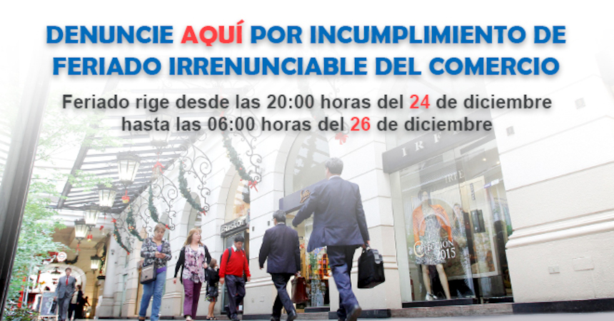 Denuncie aquí por incumplimiento de feriado del comercio en Navidad