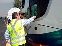 Los fiscalizadores de la Inspección Provincial del Trabajo de Talca se apostaron en el sector del Peaje Camarico, entrada norte de Talca, con el fin de fiscalizar la normativa legal que afecta al rubro de buses interurbanos.