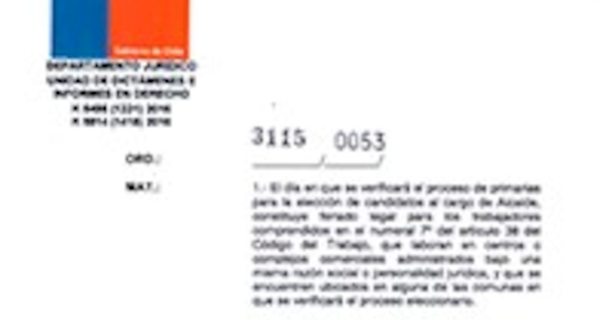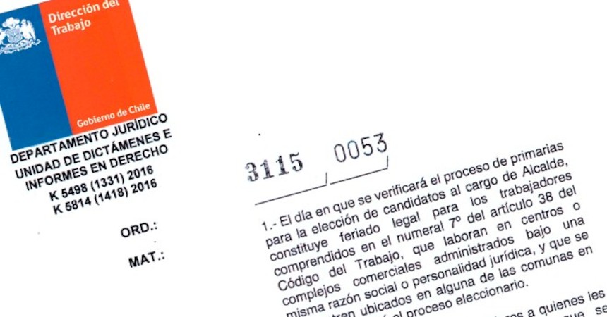 De la respuesta emitida por el Servel y de lo establecido en otras disposiciones legales, la DT concluyó que "el día en que se desarrollará el proceso de primarias para la elección de candidatos al cargo de Alcalde, será feriado legal exclusivamente en las comunas en que se realizará el referido acto eleccionario, esto es, aquellas en que legalmente se han inscrito candidaturas".