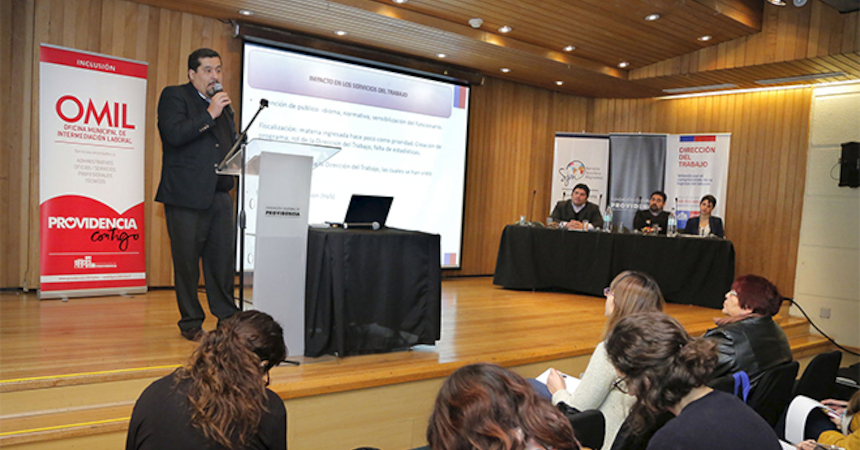 Una de sus primeras iniciativas fue la organización del seminario "Desafíos a la inclusión de migrantes al mundo laboral", realizado hoy en Providencia en conjunto con la Oficina Municipal de Información Laboral (OMIL) y el Servicio Jesuita a Migrantes (SJM).
