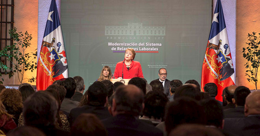 "¿Qué es lo que Chile debe valorar?", se preguntó, respondiendo que "con esta ley los trabajadores podrán contar con una huelga efectiva, con piso de negociación (colectiva), y con mayor información para el ejercicio de sus derechos colectivos", ampliándose "la negociación colectiva y las materias a tratar en ella".