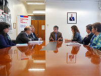 Sánchez se reunió hoy con el subdirector del Trabajo, Rafael Pereira, con quien compartió algunas ideas preliminares. En la cita estuvieron también la oficial de la OIT Carmen Bueno; el consejero laboral de España en Chile, Carlos Tortuero; el director de la ETF chilena, Juan Fredes y la funcionaria del Departamento de Recursos Humanos, Claudia Burgos.