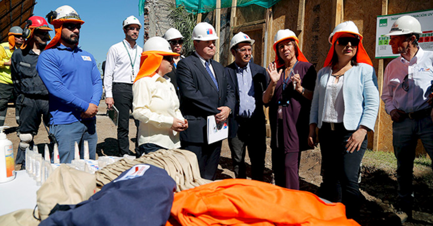 El objetivo de la visita a las obras realizadas a pleno sol fue lanzar un mensaje a empleadores y trabajadores del país a tomar siempre las medidas de reguardo en el caso de que laboren expuestos a la radiación ultravioleta, que ayer, a la hora de la actividad, registraba índices extremos.