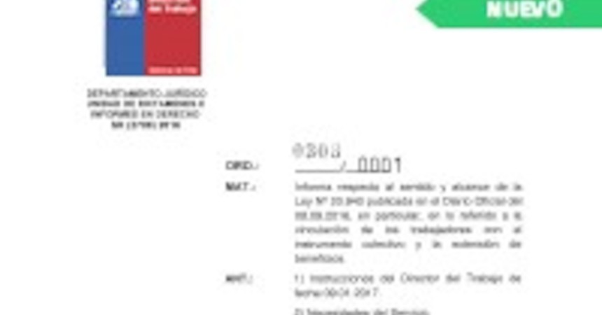 La Dirección del Trabajo (DT) emitió este miércoles el sexto dictamen interpretativo de la Ley que Moderniza las Relaciones Laborales, que se refiere a la extensión de beneficios a trabajadores no afiliados a sindicatos.