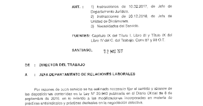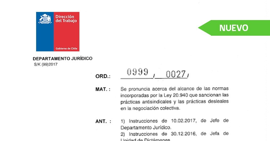 La Dirección del Trabajo (DT) emitió su octavo dictamen sobre aspectos trascendentes de la nueva Ley N°20.940, abordando los nuevos contenidos sobre prácticas antisindicales y desleales en la negociación colectiva.