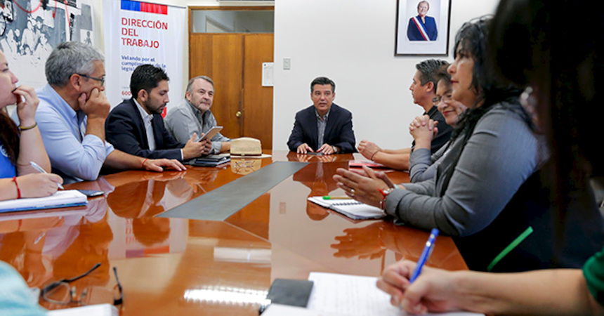 Acompañados por el diputado por la zona poniente de la Región Metropolitana, Pepe Auth, los dirigentes se reunieron con el director del Trabajo, Christian Melis, a fin de informarle sobre la solicitud que harán llegar cuanto antes al organismo fiscalizador e intérprete de la ley laboral.