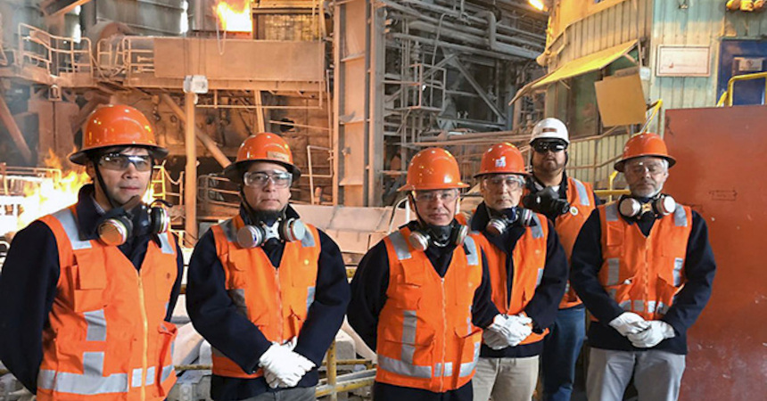Durante la jornada, Melis y el director regional del Trabajo, Rubén Gajardo, recorrieron las áreas más importantes el yacimiento, como la extracción a rajo abierto y el área de fundición.