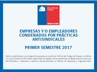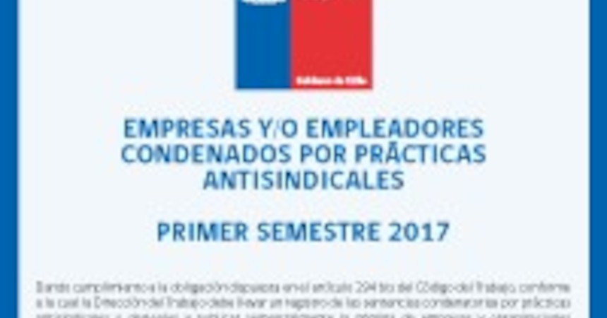 En la lista divulgada hoy por la DT en un medio de comunicación de alcance nacional no hay empresas que hayan repetido una condena de un semestre a otro. Sí figura una empresa que esta vez fue condenada dos veces por distintos tribunales: Sociedad de Transportes Intertecno Valores S.A., por separación ilegal de dirigente sindical y por separación ilegal de trabajadores con fuero por negociación colectiva.