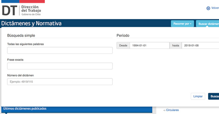 Ya está disponible para todos los usuarios de la Dirección del Trabajo (DT) el nuevo buscador de dictámenes emitidos desde 1995 por este servicio.