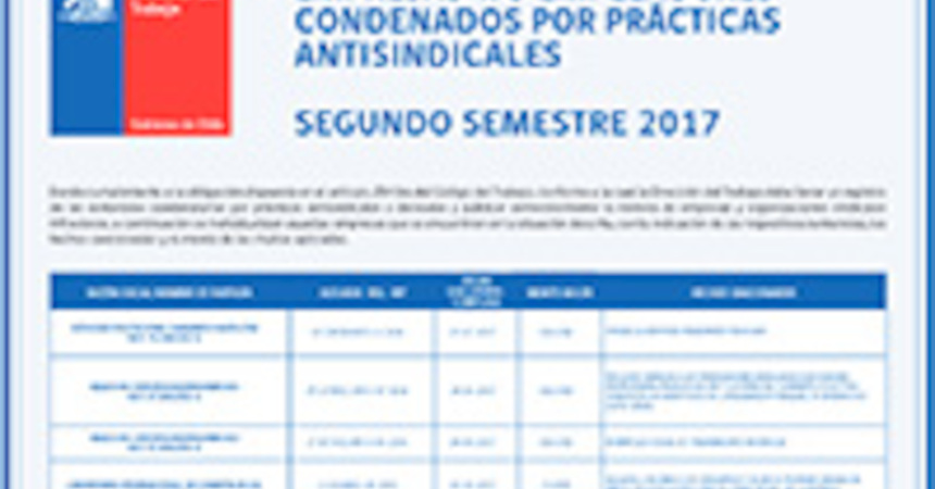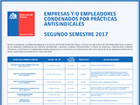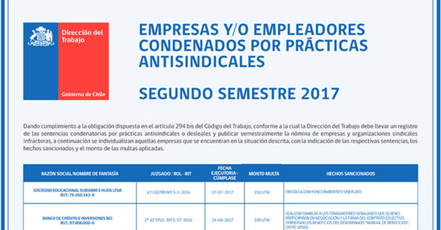 También hay empresas que ya han sido condenadas otras veces, como Alimentos Fruna Limitada que separó ilegalmente a trabajadores con fuero sindical y Ripley Store Limitada en la Región de Antofagasta debido al despido de socios del sindicato.