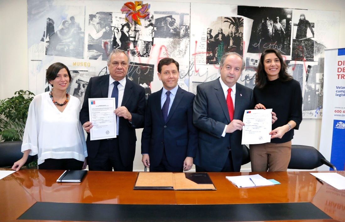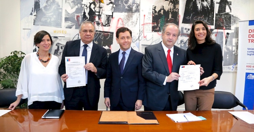 En la actividad realizada en la Dirección del Trabajo también participaron el Director del organismo, Mauricio Peñaloza; la gerente de Sustentabilidad de CAP, María Elena Sanz; el presidente del sindicato de trabajadores, Juan Cataldo, y la presidenta ejecutiva de la Fundación ChileMujeres, Francisca Jünemann.