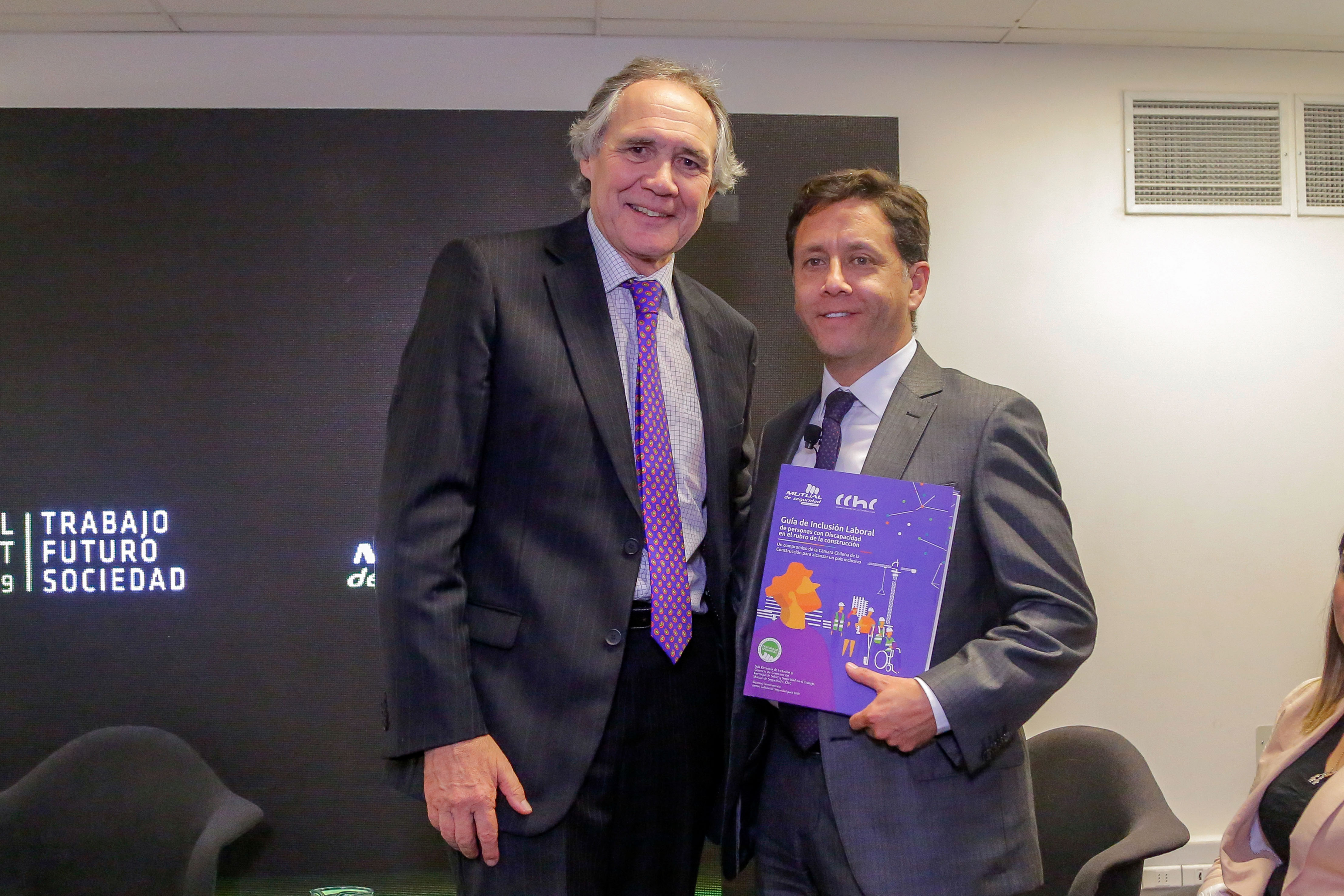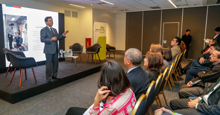 El Director Nacional del Trabajo, Mauricio Peñaloza, expuso sobre los avances logrados en materia de inclusión laboral, a más de un año de la entrada en vigencia de la Ley N°21.015, en un encuentro organizado por la Mutual de la Cámara Chilena de la Construcción.