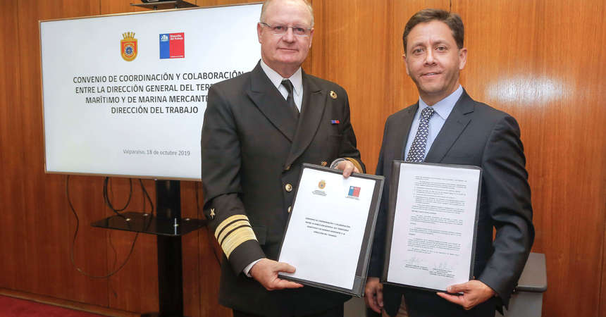 Un convenio de coordinación y colaboración para hacer cumplir las normas laborales y de seguridad y salud de trabajadores y tripulantes en puertos y alta mar firmaron el viernes 18 de octubre, en Valparaíso, la Dirección del Trabajo (DT) y la Dirección General del Territorio Marítimo y de Marina Mercante (DIRECTEMAR).