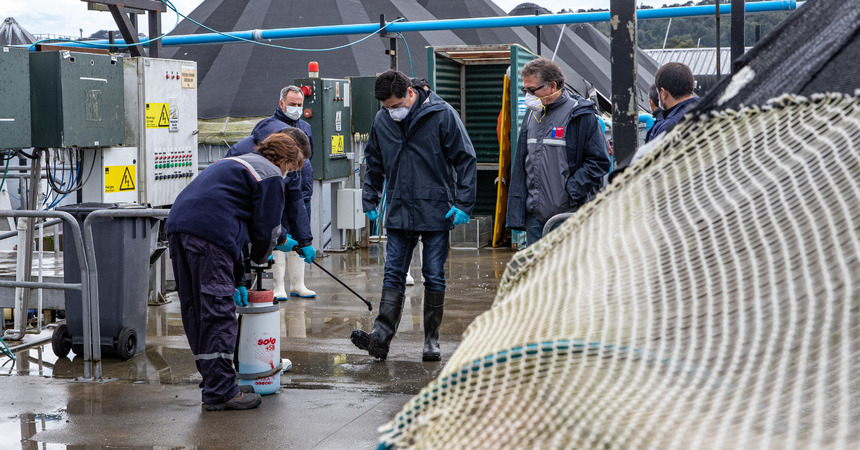 El director regional del Trabajo dijo que "cada día estamos ampliando más nuestra atención frente a la pandemia, tanto en la atención de usuarios como en la fiscalización, especialmente ahora en higiene y seguridad, comenzando con un ciclo de fiscalizaciones a la industria de la piscicultura, porque es un rubro que continúa con sus operaciones pero que debe tomar todas las medidas para resguardar la vida de sus trabajadores y trabajadoras" .