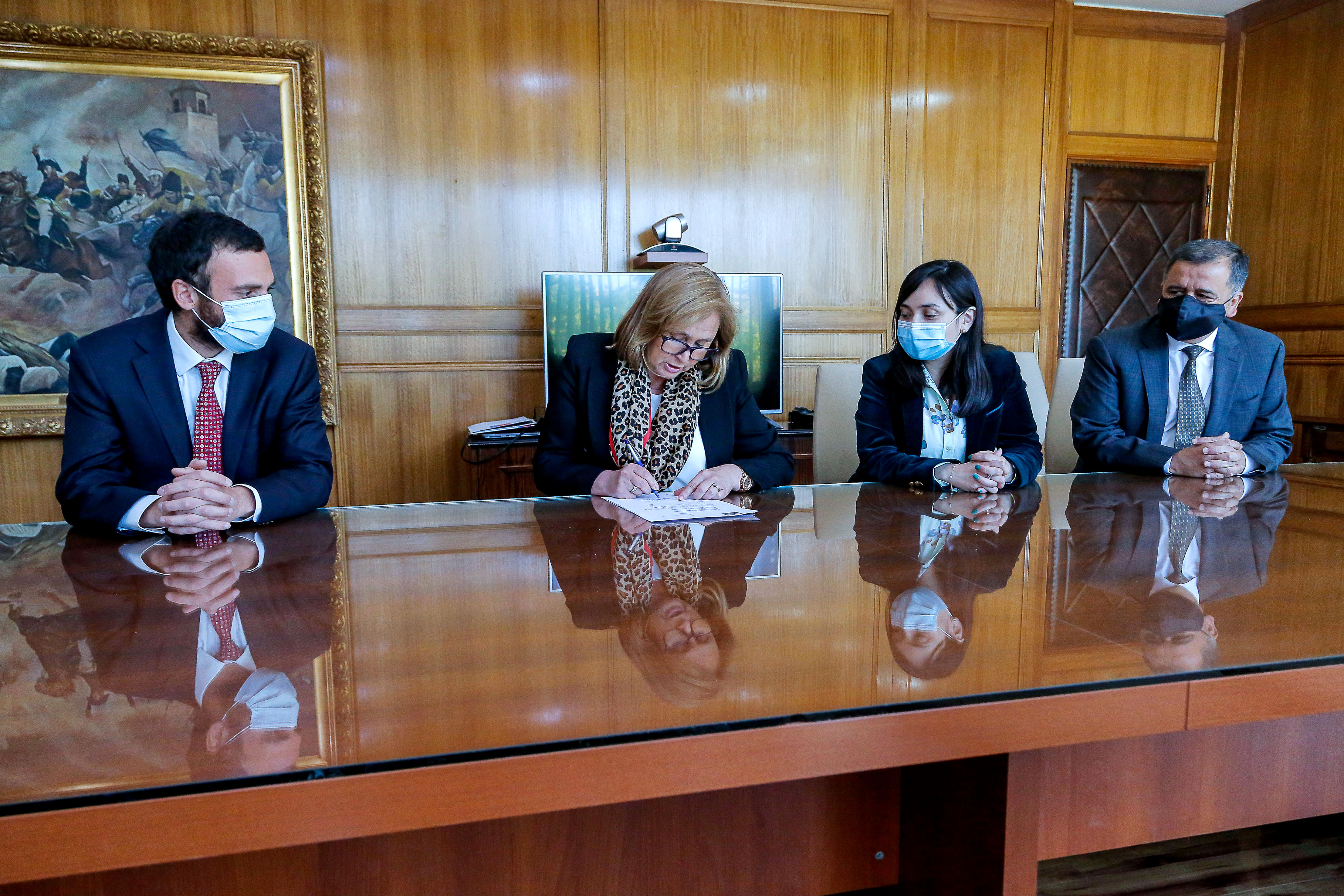 Su visita comenzó con una reunión con la Intendenta Rebeca Cofré y el Seremi del Trabajo y Previsión Social, Federico Iglesias.