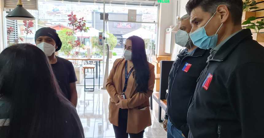 Hasta el local llegaron fiscalizadores de la IPT de Antofagasta encabezados por el director regional del Trabajo, Manuel Pozo, acompañado por la seremi del Trabajo y Previsión Social, Camila Cortés.