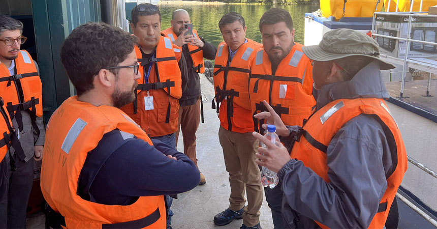 Inicio de las fiscalizaciones fue encabezado en un centro de cultivo en Teupa por el director nacional del Trabajo, Pablo Zenteno, el subsecretario del Trabajo, Giorgio Boccardo, y el seremi del Trabajo de Los Lagos, Ángel Cabrera.