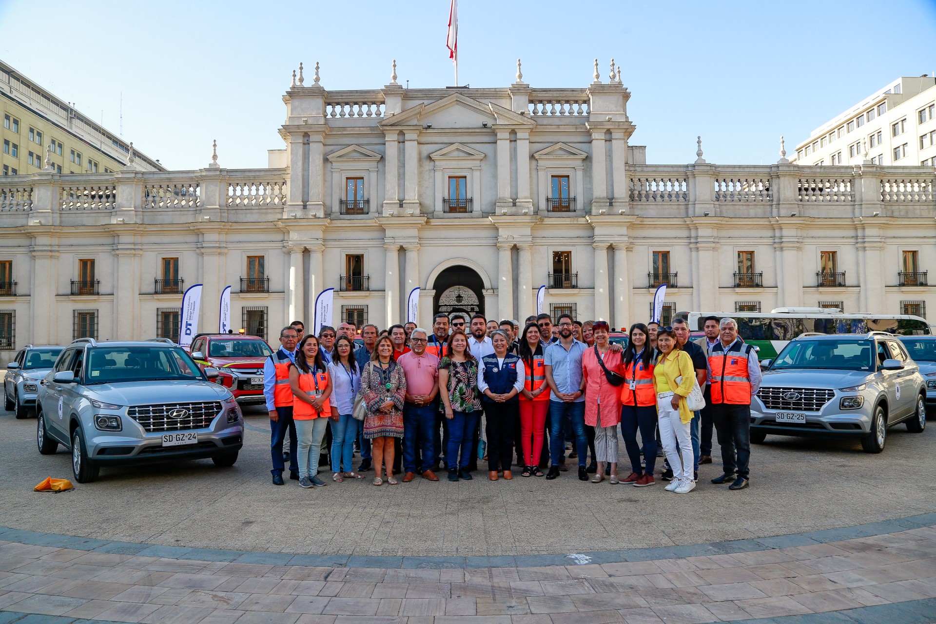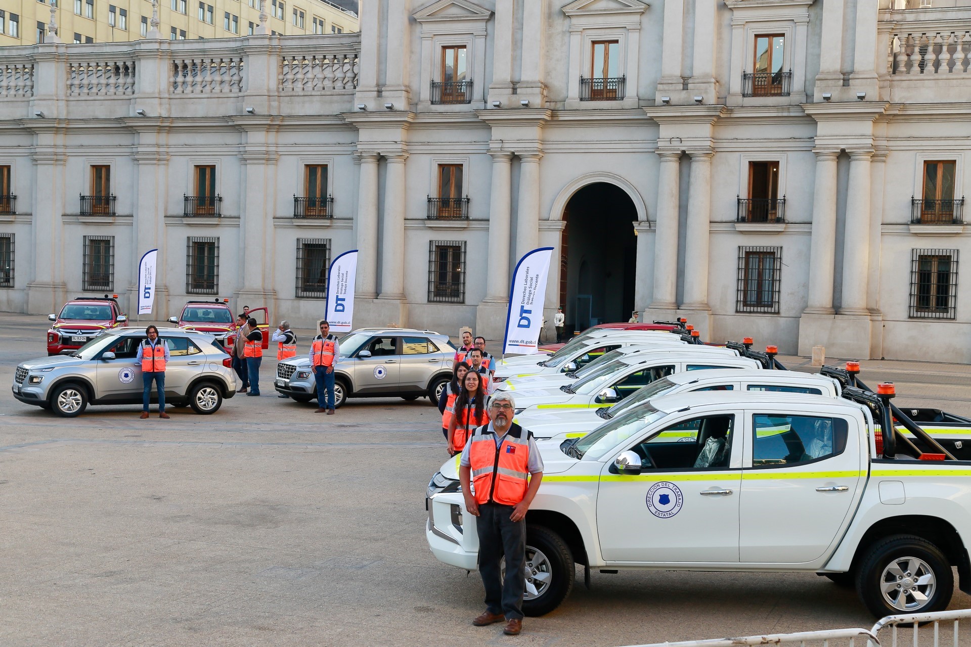 La recepción de la flota tuvo lugar en la explanada de la Plaza de la Constitución y fue encabezada por la ministra del Trabajo y Previsión Social, Jeannette Jara, el subsecretario del Trabajo, Giorgio Boccardo, y el director de la institución fiscalizadora, Pablo Zenteno Muñoz, quienes fueron acompañados por dirigentes sindicales de sectores productivos favorecidos por esta extensión del despliegue inspectivo.