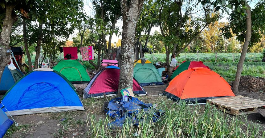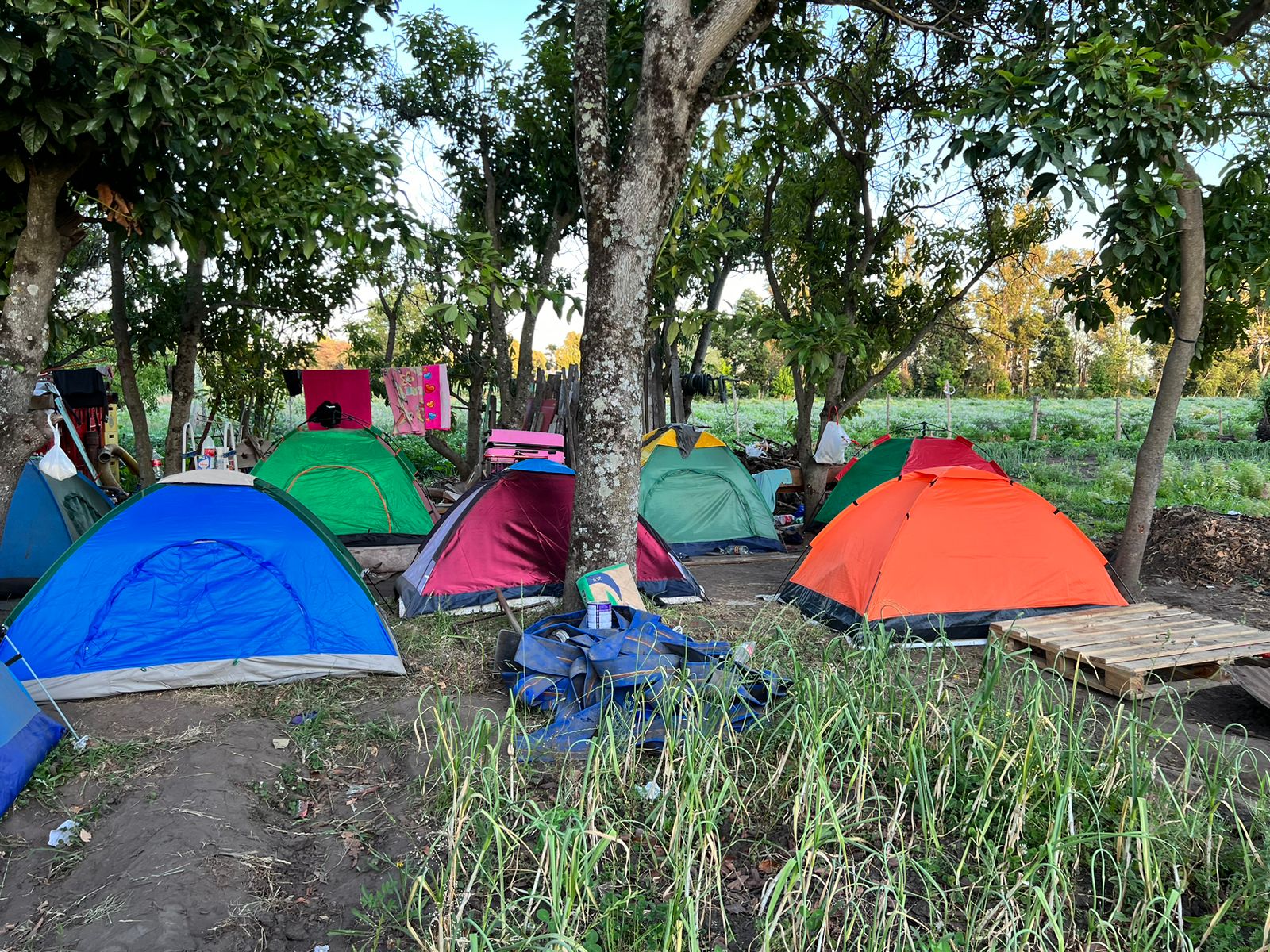 Los trabajadores y sus familias, incluyendo menores de edad, pernoctaban en un campamento formado por unas 80 carpas contiguo al lugar de trabajo de cosecha.
