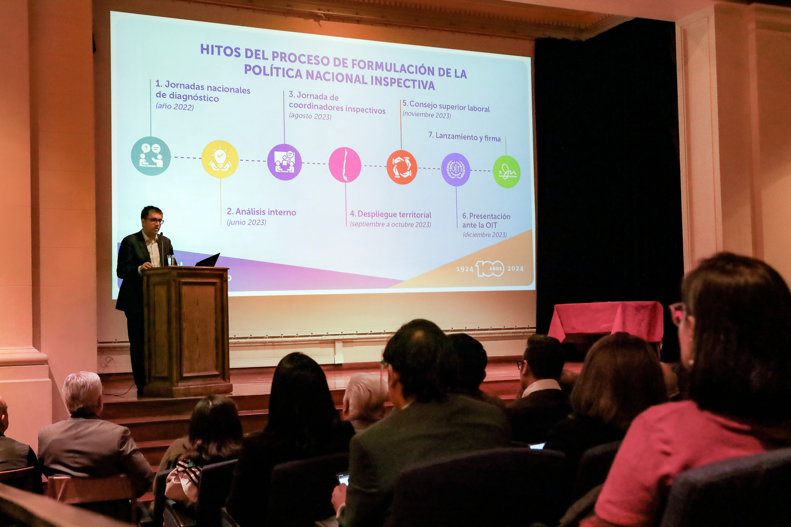 El director del Trabajo, Pablo Zenteno, añadió que una nueva política inspectiva es indispensable y urgente ante nuevos fenómenos laborales, como el de las plataformas digitales, que han generado disfunciones en las relaciones laborales. "De esta política esperamos que también nos ayude a visibilizar las mejores definiciones y los mejores procedimientos para mejorar en esa dirección, de tal forma de seguir cumpliendo los objetivos estratégicos, como la ampliación de la cobertura, el fomento de la presencialidad inspectiva y, por cierto también, el fortalecimiento profesional y la difusión de roles y prerrogativas de nuestros inspectores y nuestras inspectoras del Trabajo".