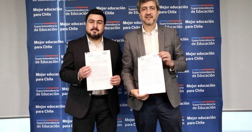 La suscripción tuvo lugar en la Superintendencia de Educación y actuaron como firmantes el director del Trabajo, Pablo Zenteno, y el superintendente de Educación, Mauricio Farías.