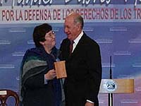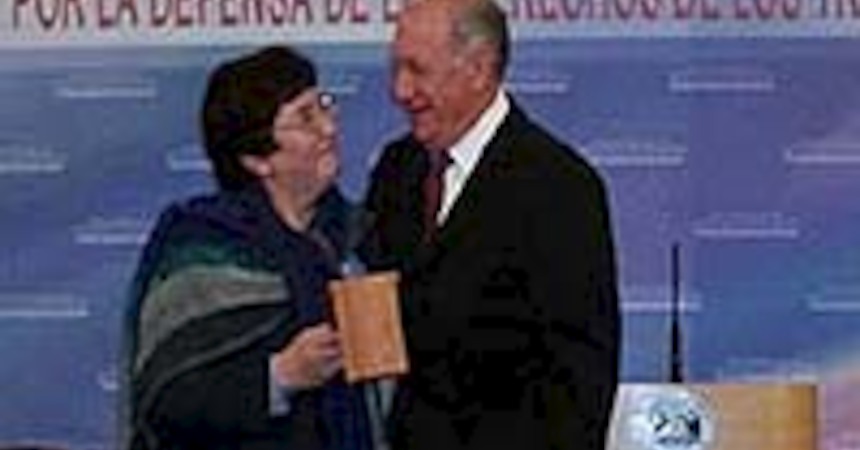La presidenta de la Asociación Nacional de Mujeres Rurales e Indígenas (Anamuri), Alicia Muñoz Toledo, recibió el Premio "Manuel Bustos Huerta", otorgado por el Gobierno a los líderes sindicales que se hayan destacado por su labor en favor de los derechos de los trabajadores, en una ceremonia encabezada por el Presidente de la República, Ricardo Lagos.