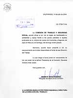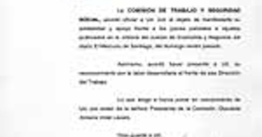 La COMISIÓN DE TRABAJO Y SEGURIDAD SOCIAL, acordó oficiar a Ud. con el objeto de manifestarle su solidaridad y apoyo frente a los juicios parciales e injustos publicados en la crónica del cuerpo de Economía y Negocios del diario El Mercurio de Santiago, el domingo recién pasado.