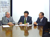 (TEMUCO, 19/5/2005).- Con la presencia del Intendente de la Araucanía, Ricardo Celis, y el Director del Trabajo, Marcelo Albornoz se realizó el pasado viernes la ceremonia de nombramiento del nuevo director para la Novena Región, Francisco Huircaleo, quien se desempeñaba en el mismo cargo en la Región del Maule. La nueva autoridad asumió en reemplazo de Héctor Orrego.