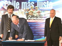 El Presidente de la República, Ricardo Lagos, en compañía de de los ministros de Justicia, Luis Bates, y del Trabajo y Previsión Social, Yerko Lubjetic, promulgó este lunes en el Centro de Mediación de la Dirección del Trabajo de Santiago la Ley Nº 20.022, que duplica el número de jueces en materia Laboral y crea tribunales especializados de Cobranza Laboral y Previsional. Asimismo, el primer Mandatario puso en funcionamiento la Ley Nº 20.023, que establece un procedimiento ejecutivo de cobranzas previsionales, para hacerlo más ágil y eficiente.
