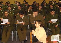 Trescientos uniformados recibieron capacitación en Contrato Colectivo, Negociación Colectiva, y Facultades y Atribuciones de la Dirección del Trabajo, a cargo de la coordinadora jurídica regional, Paula Caico, y del coordinador de Relaciones Laborales, Héctor Moyano.