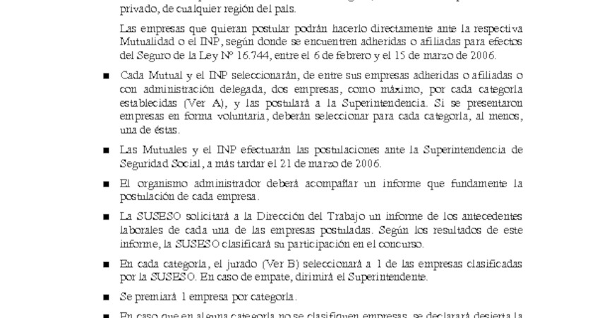 Las empresas que quieran postular podrán hacerlo a través de la respectiva Mutualidad o del INP, entre el 6 de febrero y el 15 de marzo de 2006.
