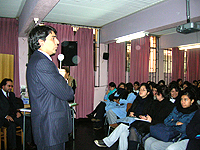 El entusiasta público femenino del Liceo Clelia Clavel, participó activamente en el taller respondiendo y realizando preguntas relativas al mundo laboral al que están por acceder. Este liceo entrega los títulos técnicos de Administrador Operativo de Supermercados, Alimentación Colectiva y Asistente de Párvulos.