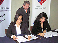 Un convenio de coordinación mutua en materia de trabajo femenino firmaron la Directora Regional del Servicio Nacional de la Mujer, Paula Baltra, y la Directora Regional del Trabajo de Antofagasta, Viviana Ramírez, destinado a velar por el cumplimiento de los derechos laborales de las mujeres trabajadoras, potenciando sus condiciones.
